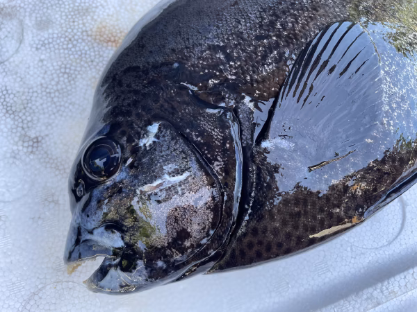 素潜りでの魚突きで捕獲しています。常に頭、エラ付近を狙うように意識していますが、体に撃つ事もあります。
