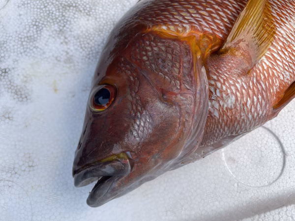 素潜りでの魚突きで捕獲しています。常に頭、エラ付近を狙うように意識していますが、体に撃つ事もあります。