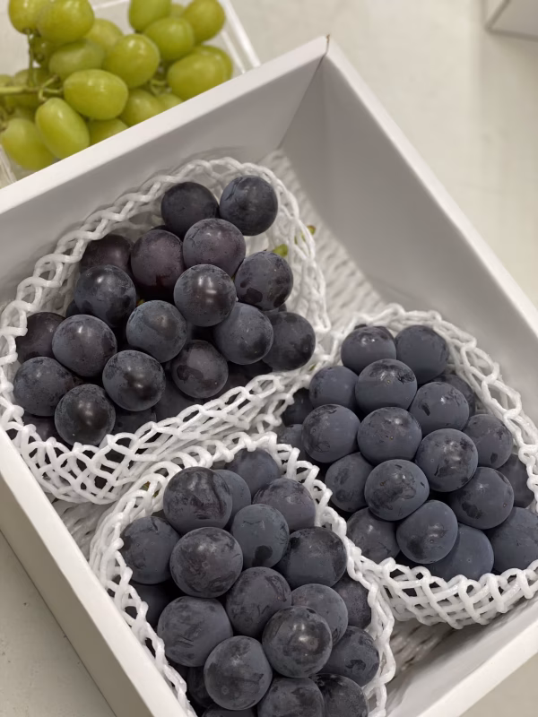 藤稔は軸から粒が外れやすい品種となっております。配送時の揺れ等で数粒外れてしまう可能性がございますが、ご了承ください。
