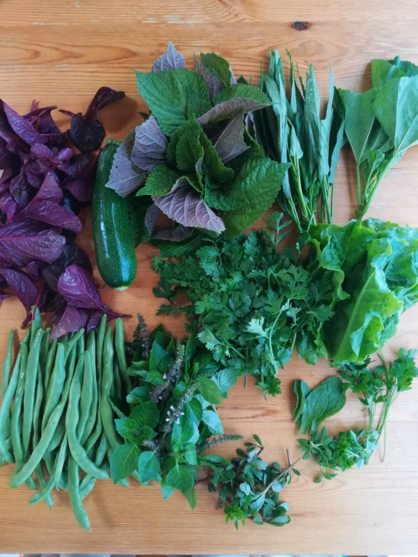 ※ふだんスーパーなどには置かれていない「ちょっと変わったハーブ、野菜」が入ることがあります。どれも大量には入れませんので、馴染みがない野菜もぜひお試し頂きたいのですが、もし「パクチーはどうしてもダメ」などありましたらお知らせください。