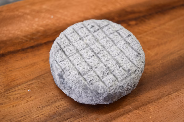 山羊乳を乳酸発酵させた後に、さらに酵母等で発酵させ最後に炭と灰をかけました。周りの黒い色は、前述の炭と灰の色なのでそのまま黒い部分まで食べられます。