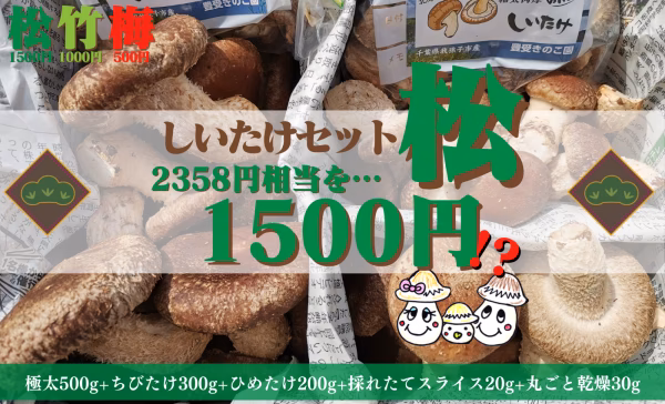 • 【お試しBOX】豪華なしいたけ詰め合わせセット!【松セット】