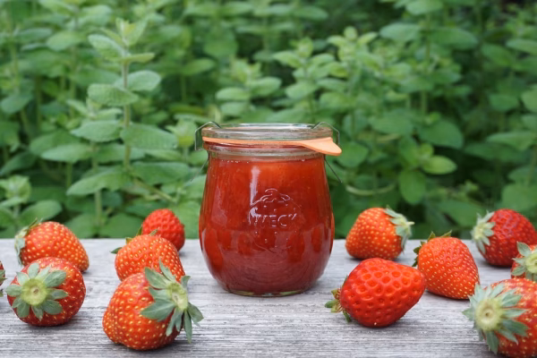 農園の完熟いちご冷凍500gパック(ビートグラニュー糖100g入り)、レモン果汁、WECK140mlビン4本、平田観光農園の楽しい音楽演奏会&作り方動画