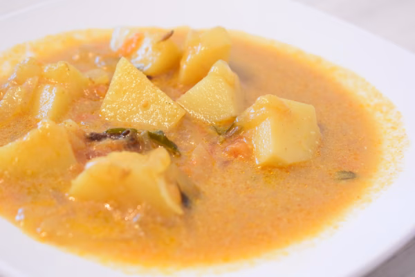 ココナッツたっぷりのポテトカレースパイスキットと野菜のセットです。こちらのスパイスセットがあれば、本格的なスリランカポテトカレーがご家庭でお楽しみいただけます。1回分(約5皿)の分量でレシピも載っているので、初心者の方でも簡単に本格的なスパイスカレーを作ることができます。