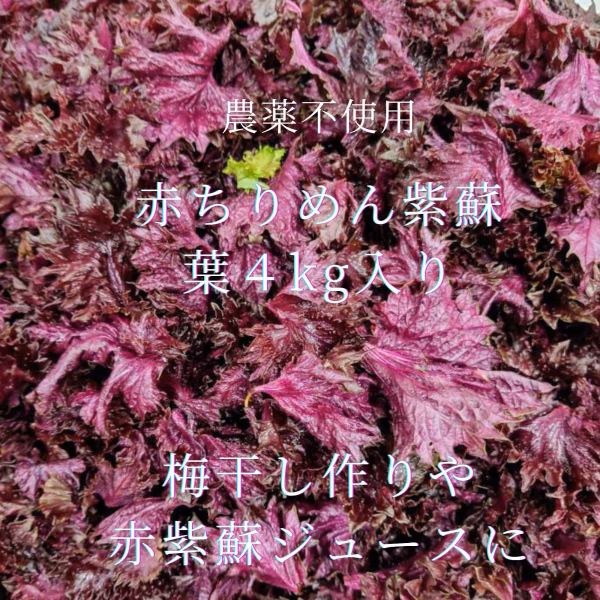 赤ちりめん紫蘇で色がよくでる品種です。梅干し作りや、赤紫蘇ジュース作りに葉だけですので洗って干してそのまま加工していただけます。