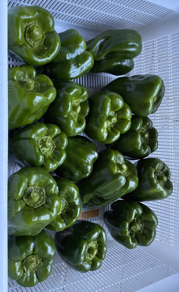 ピーマンの花びらは5枚で、ヘタの形も五角形のものが普通ですが、良い栄養状態では花びらがたくさん付き、花びらも6枚、ヘタの形も六角形、七角形になり成長も早く糖度も上がり美味しくなると言われています。今回、六角形〜七角形のを入れますので食べ比べてください。