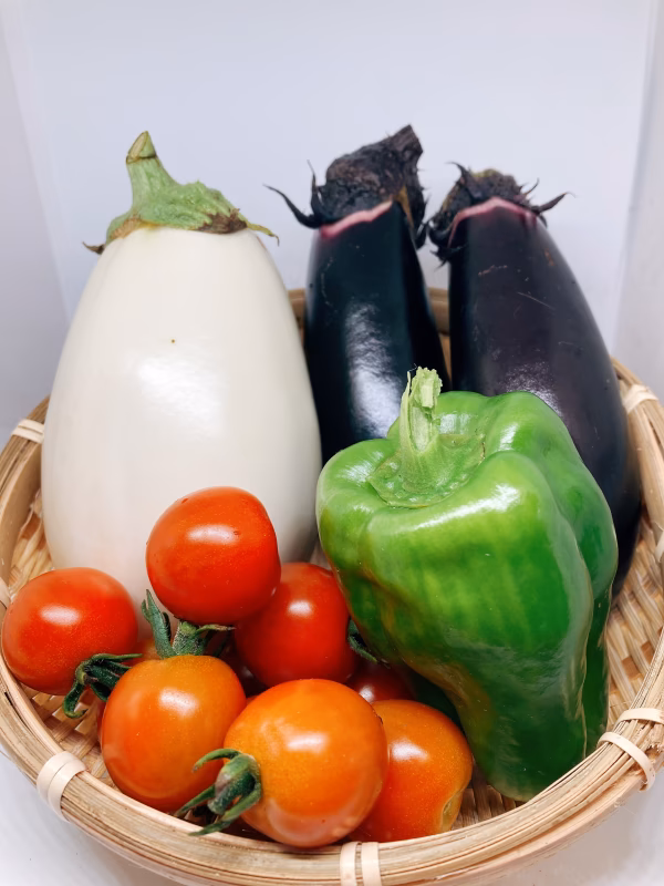 主にナス、白ナス、ピーマン、ミニトマト、などを入れます!