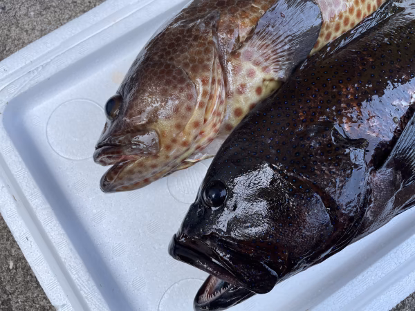 素潜りでの魚突きで捕獲しています。常に頭、エラ付近を狙うように意識していますが、体に撃つ事もあります。