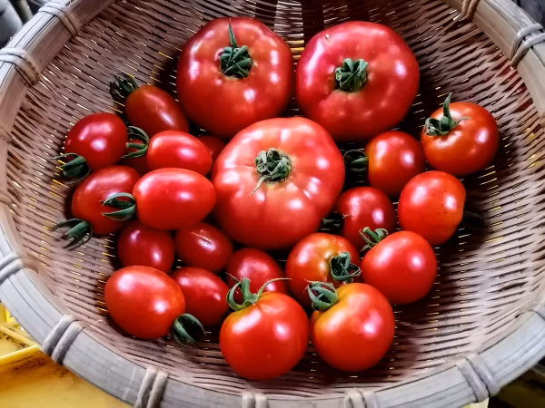 大、中、小、それぞれのトマトの食味や食感の違いをお楽しみくださいませ。