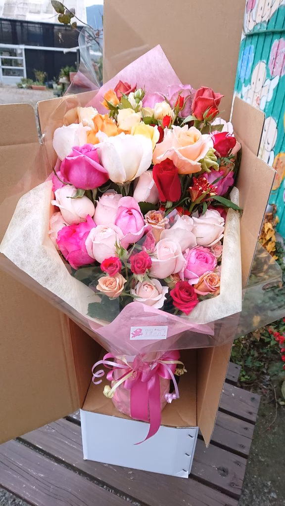 フラワーアレンジメント師範資格を持つオーナー監修のもと厳選した組み合わせ80本で花束を作成致します♪