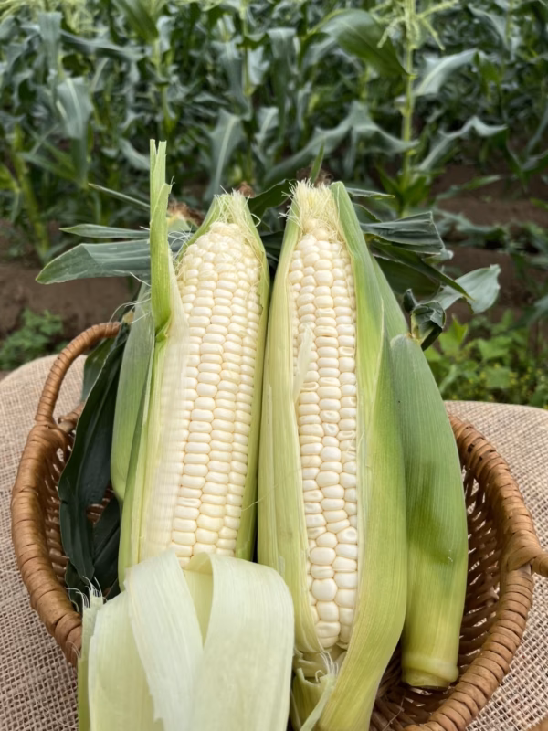 もはやフルーツ並みの甘さ。ショ糖由来による極甘ホワイトとうもろこしです。クセがなく口にしやすい、みずみずしさ満点の一本です。是非生でそのままかじってみて下さい❗