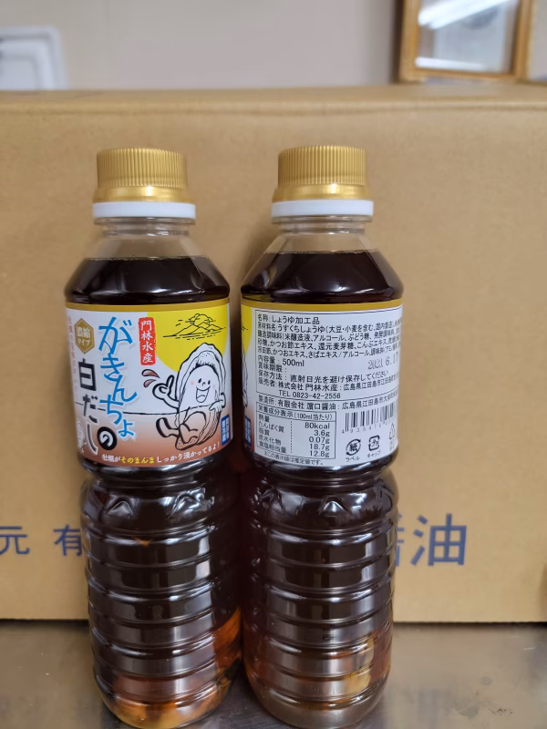 広島県で育てた牡蠣を乾燥して、白だしにミックスして付きなりました。