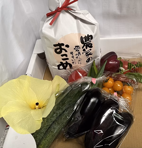 ▼期間限定です。当方おまかせの季節の旬の野菜(3~4種類)と令和3年産のひとめぼれ2kgをセットにしました