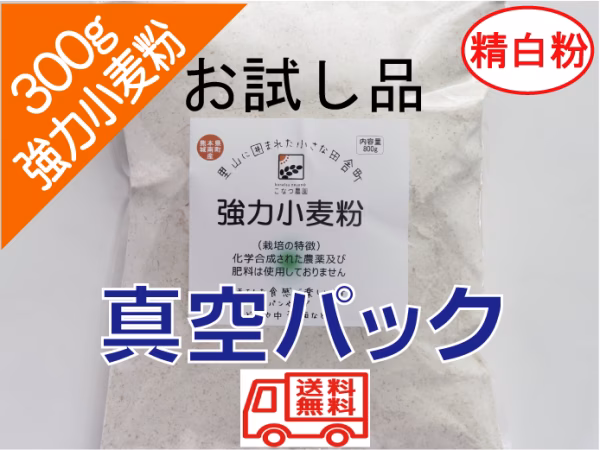 - 1.名称 小麦粉 2.原材料名 小麦 3.内容量 300g 4.保存方法 高温多湿の場所、直射日光を避けて保存してください。 5.食品衛生責任者 株式会社こなつ農園 小夏英昭