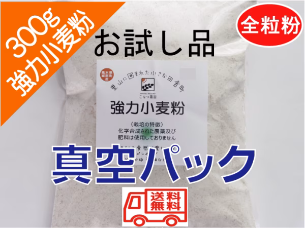 - 1.名称 小麦粉 2.原材料名 小麦 3.内容量 300g 4.保存方法 高温多湿の場所、直射日光を避けて保存してください。 5.食品衛生責任者 株式会社こなつ農園 小夏英昭