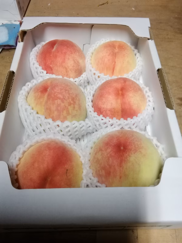 ▼自己紹介 甘い桃で、笑顔になって欲しい、そんな想いで桃作りに励んでいます。 ▼商品概要 大雨洪水でお困りの地域が多い昨今、香川丸亀は、極端に雨量が少なく、小ぶりな実が多い半面、糖度は高く仕上がっています。 ▼品種・味の特徴・食べ方 香川の桃シーズンも終盤を迎え、白く柔らかい果肉に赤みと程良い甘さに包まれた美味しい桃になりました、 ▼数量、分量の目安 最小の60サイズの箱に美味しい桃を6個詰め込みました、 ▼栽培/生産方法、こだわり 害虫対策にフェロモントラップを施すことで農薬の削減にもチャレンジしています、 ▼注文に際しての注意点(配送方法や納期指定など)