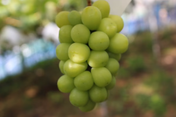 農薬を抑えたハウス栽培のシャインマスカットです。見た目よりも味と食感にこだわって栽培しています。
