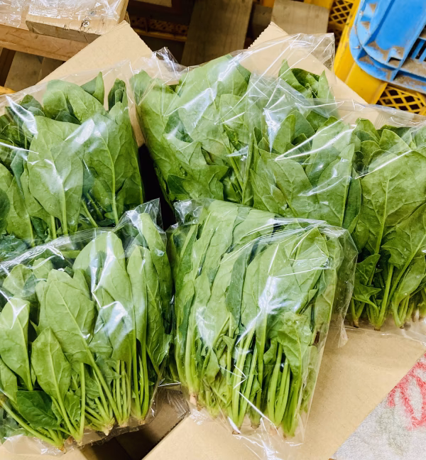 成熟前の柔らかいほうれん草、20センチに満たないサイズで収穫したもののみ発送します。