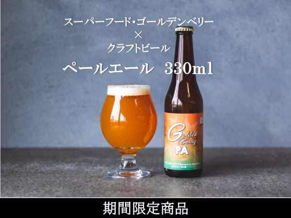 クラフトビールの醸造・販売を行っている岩手県花巻市のBrewBeastさんとのコラボ商品、ゴールデンベリークラフトビール<ゴールデンベリーペールエール>です。1本あたりにゴールデンベリーがピューレとして60g以上含まれています。ゴールデンベリーの果実は、爽やかで程よい酸味と濃厚な甘みがあり、トロピカルでジューシーです。そのゴールデンベリーがたっぷり贅沢に含まれることにより、トロピカルな香りと旨味、そして果肉をも味わえるビールができました。
