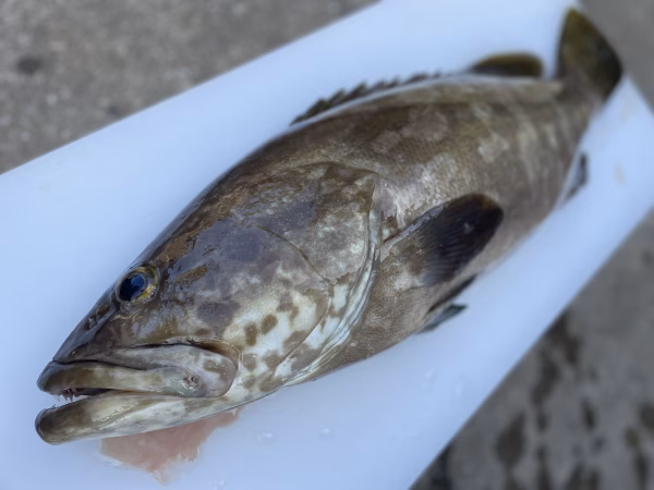 今朝のはえ縄漁で釣り上げた天然のクエです。