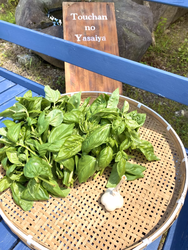 無農薬無化学肥料栽培のにんにくとたっぷりのバジル!自家製ジェノベーゼソース作りはいかがでしょう。