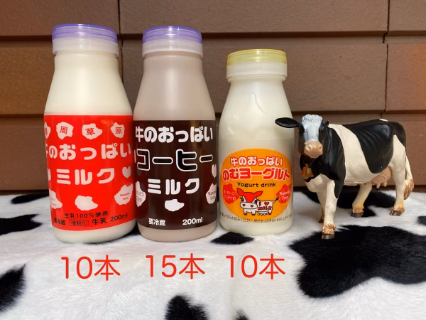 - 牛のおっぱいミルク 200ml×10本 牛のおっぱいコーヒーミルク 200㎖×15本 のむヨーグルト 150㎖×10本 冷蔵で10℃以下で保存 賞味期限 ミルク8日、コーヒー9日、ヨーグルト15日
