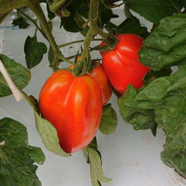 かなりマイナーな加熱用のイタリアン品種です。 晩生でじっくり熟したイタリアントマトはソースや焼きものに最適。ゼリー部分が少なく肉詰めなども出来ます🎵 多収出来ない品種なので育てにくいんですがお気に入りです🎵完熟で収穫します☀️