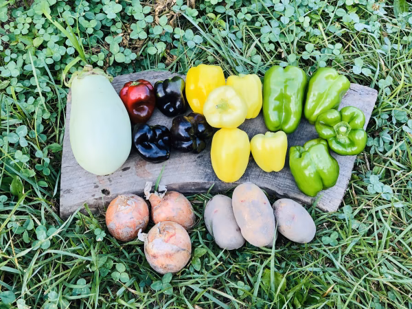 【60サイズ例、小さめきゅうり2本、玉ねぎ2個、赤玉ねぎ2個、じゃがいも3個、万願寺とうがらし5本、茄子2本】とミニトマト1kgセットです!
