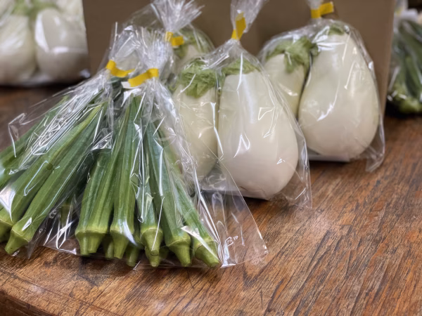 発送方法につきましては、品質保持のため冷蔵便で発送しますが、なすとオクラに関しましては、お荷物到着後常温保存、もしくは野菜室などで保管して下さい。