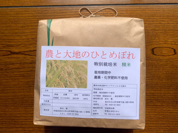 農薬・化学肥料を使用しないで栽培したお米として、宮城県の特別栽培米の認証を取得しています。