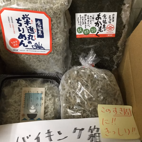 - かえり・ちりめん冷蔵で2ヶ月 釜揚げ、アカモク冷凍6カ月