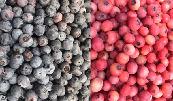 ピンク色で完熟となり、サクランボのような風味の希少品種フロリダローズをミックスしたブルーベリーです。