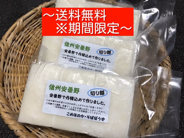 ※令和4年12月23日~26日に発送予定です。 ※「⻑野県産品 送料無料&お買い得キャンペーン」により送料を無料でお届けします。なお、本キャンペーンは令和4年12月27日(火)までですが、支援上限金額に達し次第予告なく終了する場合があります。 ★特別栽培のもち米(こがねもち)を使用した切り餅です。 信州安曇野で丹精こめてつくりました。 真空パック入り6切れ(約450g)です。