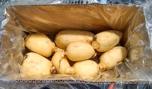 通常、収穫したレンコンは4キロ一箱で市場へ出荷されます。