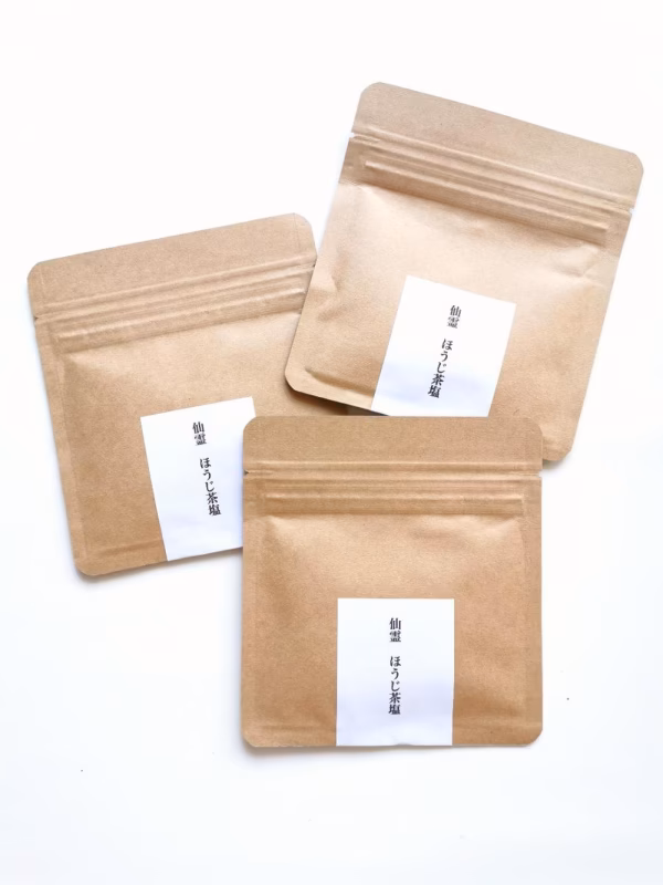 粉末の粒子の細かさや、塩の種類とサイズ、配合などにもこだわり、何ヵ月もの試作期間を経て作り上げた、仙霊自慢のほうじ茶塩を是非お試しください!