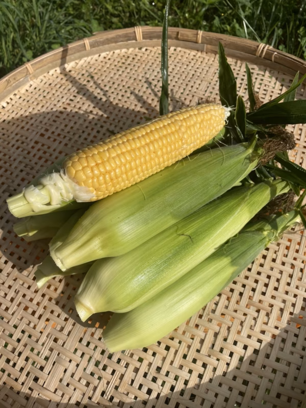 ▼自己紹介 長野県岡谷市樋沢地区(標高1000m)で栽培した高原野菜です。 民家は殆どなく、山に囲まれた自然豊かな場所で農業を営んでおります。 標高が高いので栽培期間が短く天候被害も多いですが、何より美味しく安全なお野菜が栽培出来るので、この土地で農家をやっております。 出来るだけ無農薬、化学肥料完全不使用(作物によっては、有機JASより使用許可を得たBT剤を使用する場合があります。その際は使用している作物を記載致します。) ▼商品概要 80サイズ(5kg)の箱に、とうもろこし 11~13本を入れてお届け致します。(重さの関係で本数が変わりますのでご了承ください) 当園のとうもろこしは寒暖差の影響で甘味が強く、有機肥料のみで栽培している為、無理に太らず、身の締まった食味が特徴です。 お届け日なら生でも食べられる鮮度です! 品種はサニーショコラとゴールドラッシュを使っております。 *防虫の為、有機JASより使用許可を得たBT剤を使用しておりますが、かなり減農薬での栽培の為、まれに虫が付いている事があります。ご了承ください。(一本ずつ確認してお届けします!) 天候にもよりますが、基本的には発送日に収穫して、クール便でお届け致します。 収穫が天候によって左右される為、基本的には日時指定受け付けておりませんが、どうしてもご理由があって指定されたい方は、ご連絡ください。 山の中で獲れたお野菜で、美味しく楽しい食事のお手伝いが出来たら幸いです。