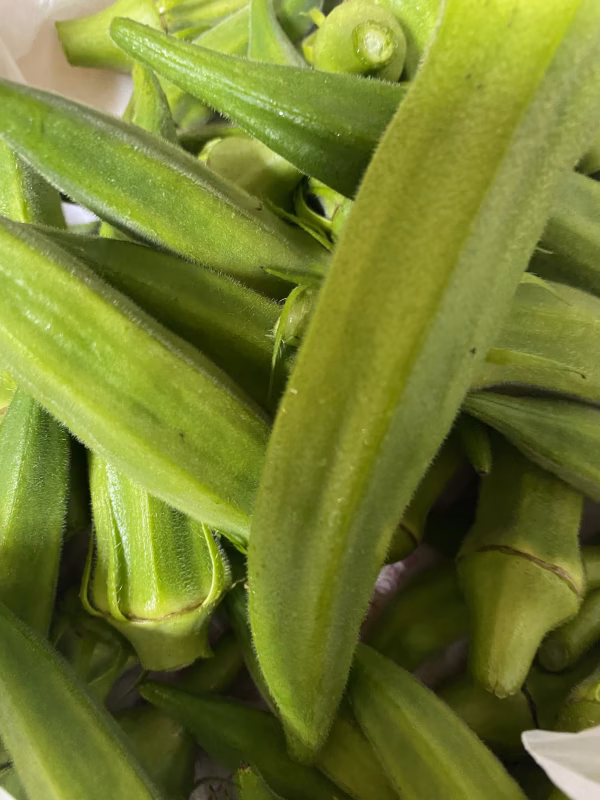 毎度おなじみ【愛媛県産低朝採りブロッコリー】でお馴染みのファームアローンよりオクラ100本位。個数はおおよそです。大小さまざま。芽が出始めの頃に一回消毒しただけでその後は何もせずスクスク育ってます。毎日40ー50本取れます。二日間分を80サイズの箱にお入れして冷蔵で発送させて頂きます。
