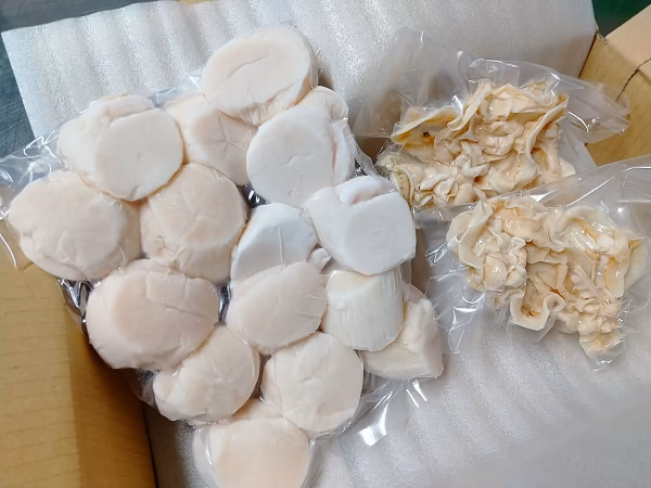 今回はボイルしたホタテ貝ヒモもセットにしました。