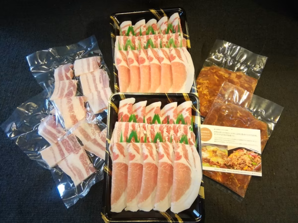 薩摩芋をふんだんに与えた鹿児島黒豚のもも肉、腕肉のセットです。