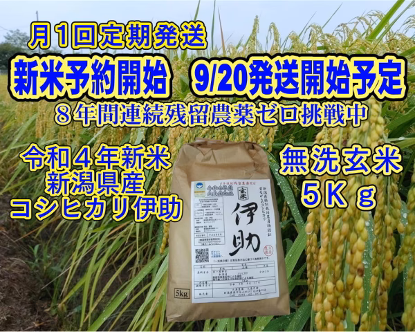 新潟県の試験機関で2015年産より残留農薬がゼロ認定を受けており、今年も8年連続残留農薬ゼロ挑戦中のお米です。