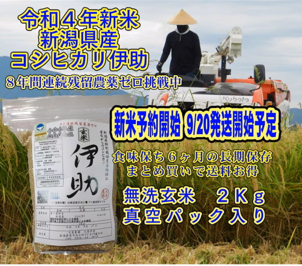 当農園の栽培したコシヒカリ伊助は、新潟県より無農薬・無化学肥料栽培の特別栽培農産物の指定を戴いています。