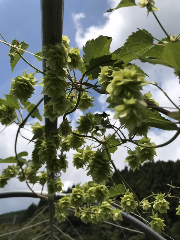 ひさしぶりの出品となります。 クラフトビールがブームですが、その原料ホップは冷涼な気候でよく育つとのことで、数ある品種よりいくつか選び、去年より植えてます。 その中でもカシミアという、世界のビール業界で新星とされるアロマホップがよく育ちました。フルーティーな香りがほのかにします。噛めばビールの濃縮した苦味が口に広がります。ジョッキに注いだ冷たいビールにのせて、その風味をお楽しみください。