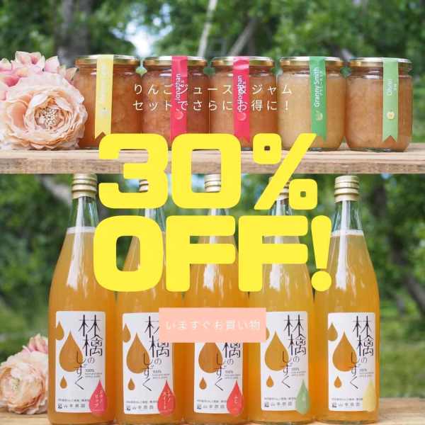 本商品は【りんごジャムとジュースがセットでさらにお得な30%OFF!キャンペーン!】です。ジャム単品、ジュース単品もそれぞれ20%OFFにてご提供中です。