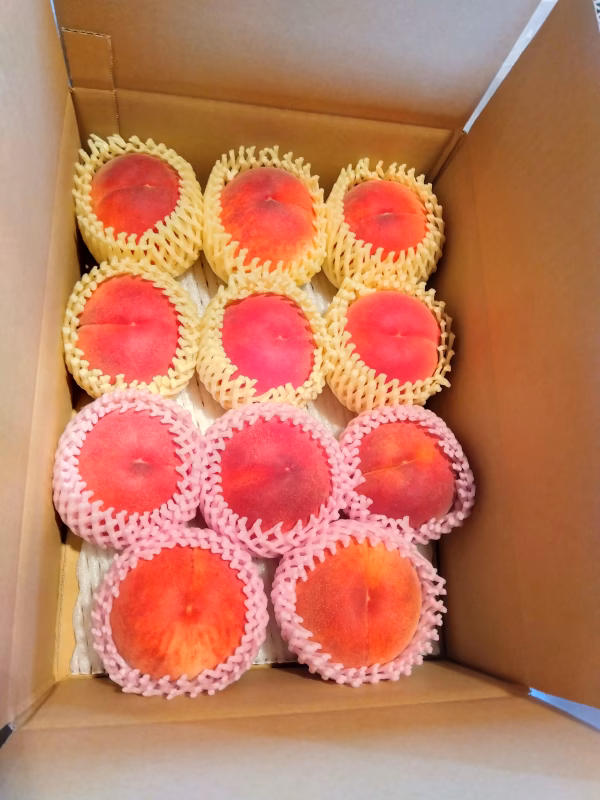 ※センサーで糖度を測っていませんので、一つ一つ糖度が異なります。桃はりんごよりも、糖度のバラツキが大きいくだものですので、甘みが少ないものが混入してしまう可能性もありますこと、ご理解下さい。
