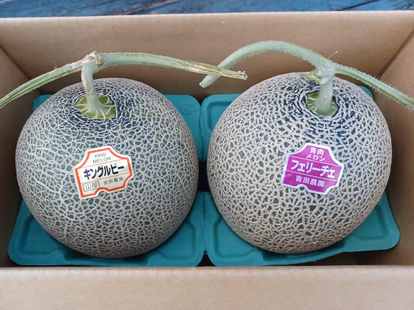 発送時はメロンの品種がわかるよう、品種名が書かれたシールをメロンに貼らせて頂きます。