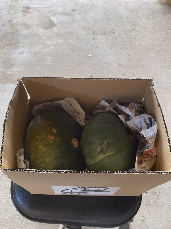 甘くて柔らかい農薬化学肥料不使用のえびすカボチャ、2個入りです!! 甘くて柔らかい、どんな料理でも美味しいカボチャです! デリケートな方や小さいお子様にも安心です!大きめサイズのため、箱から多少はみ出てしまいますが、大切に梱包してお届け致します! 商品到着後、暑い所を避けて、切らずそのまま常温でひと月、冷蔵庫で2か月は保存可能です。 柔らかいのでカボチャサラダ、コロッケ、スープなど作りやすいです。あまいので煮物にしても砂糖は必要ありません。天ぷらにも! やや傷などついてるものもありますが、美味しさはかわりません!