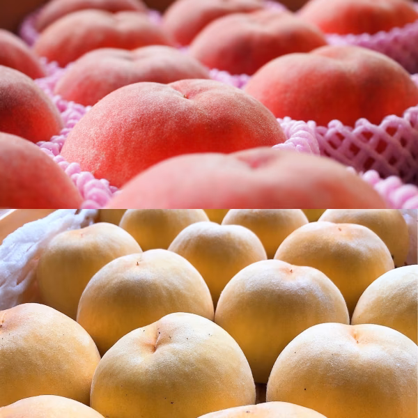 「黄金桃」「川中島白桃」のいずれか、またはセットでお届けします。