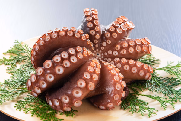 ※生きたタコを素早く締め鮮度維持のため真空パックにて急速冷凍かけております。