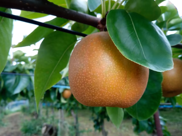 南水梨の系統の梨のため、甘く、酸味が少ないのが特徴。