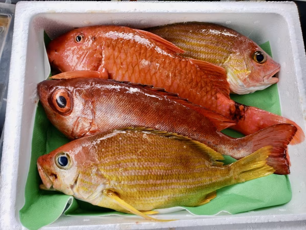こちらは、本日(8/19)に水揚げされた鮮魚セットに入りきらなかった”余りモノ”です。「ヨコスジフエダイ」「チカメキントキ」「ヒメジ」の3種入りとなります。